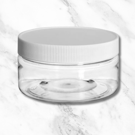 Jar 8oz Clear Wide + Ribbed White Cap (89/400)