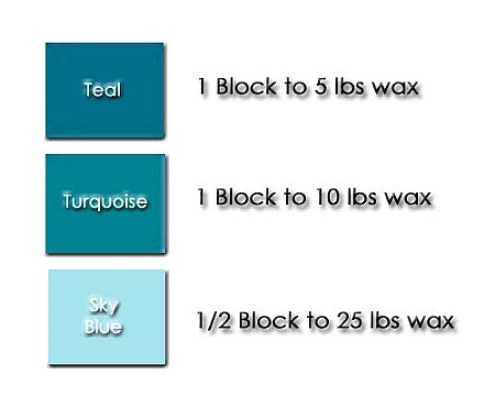 The depth of the colour can be varied based on how much of the block you use to how much wax.