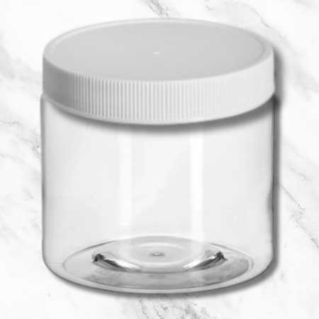 Jar 16oz Deep CLEAR + RIBBED White Cap