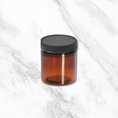 Jar 2oz Deep AMBER + Ribbed Black Cap (48/400)