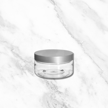 Jar 2oz Wide CLEAR + SILVER Smooth Cap