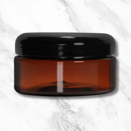 Jar 8oz Amber Wide + Domed Black Cap (89/400)