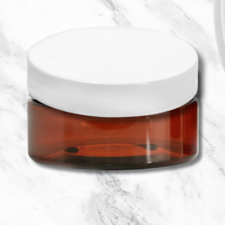 Jar 8oz Amber Wide + Smooth White Cap (89/400)