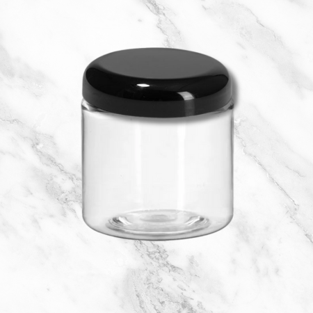 Jar 8oz Deep CLEAR + BLACK Dome Cap
