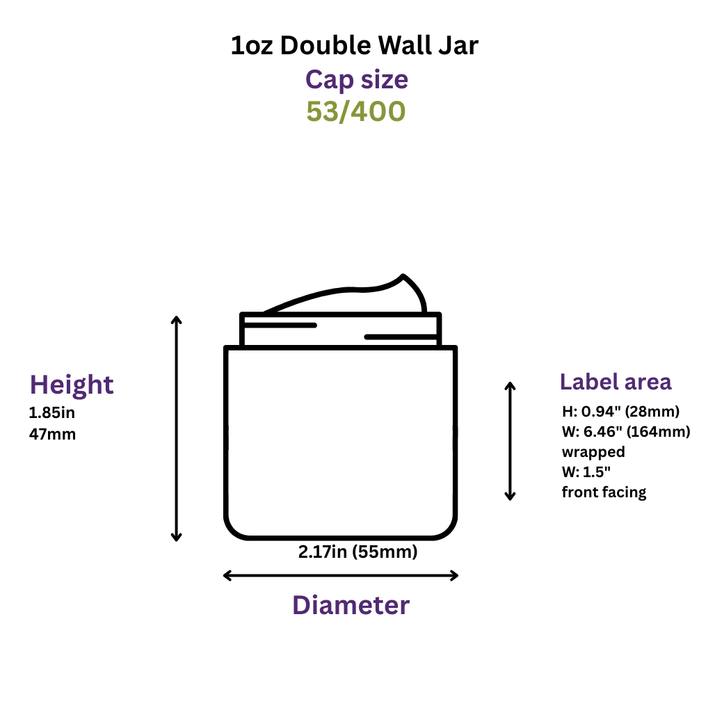 Jar Double Wall, 1oz + Dome White Cap (53/400)